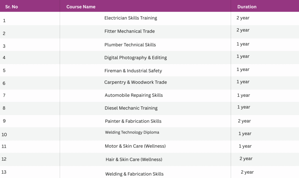 Our Skill Training programs are meticulously designed to align with the NSDC (National Skill Development Corporation) standards to empower the rural youth of Punjab. Under the umbrella of Jeevan Jot Health Care and Educational Welfare Society, we provide high-quality vocational training in various industrial trades to ensure better livelihood opportunities and professional growth for our students.”